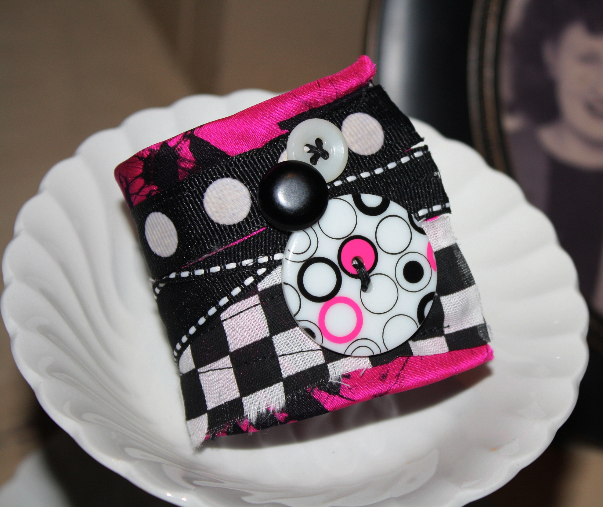 90% repurposed materials, using an UPcycled kneck tie as the base for this wrist cuff, with layers of recycled materials and buttons/tie tags or pendants! Fits wrist 7 1/4". 2 1/2" wide cuff. Can be worn snug or loose, depending on the size of your wrist. Velcro closure. This is a soft wrist cuff!