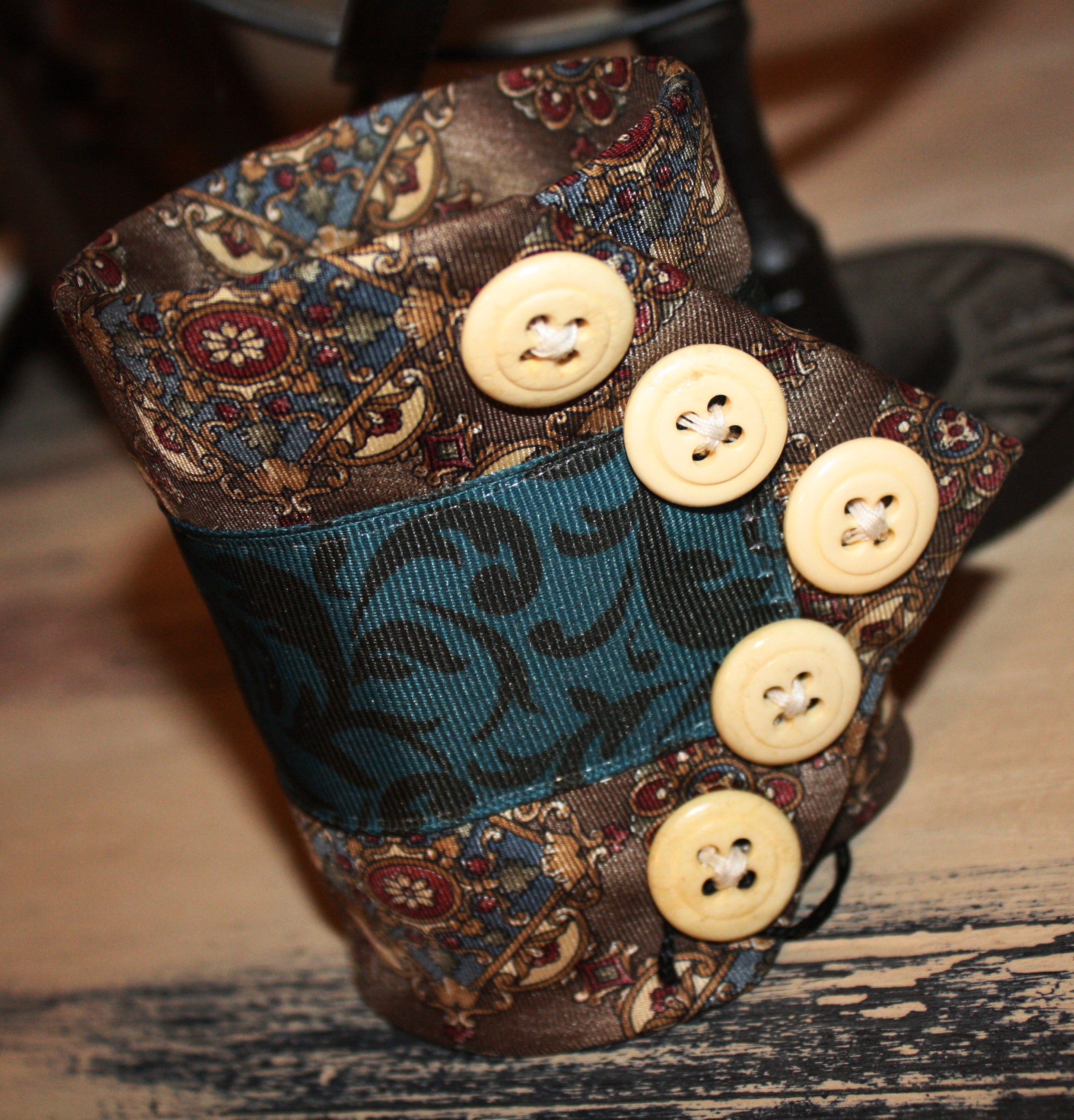 90% repurposed materials, using an UPcycled kneck tie as the base for this wrist cuff, with layers of recycled materials and buttons/tie tags or pendants! Fits wrist 7". This is a 2 1/2" wide cuff. Can be worn snug or loose, depending on the size of your wrist. Velcro closure. This is a soft wrist cuff!