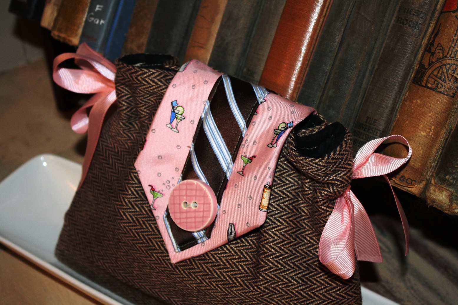 Regular price $30.00 - on sale now! 90% repurposed materials, measuring approximately 7"x9" with a 1" depth for all your stuff! Created by using UPcycled skirts and/or jackets as the base for the clutch, with a flap over kneck tie closure. Velcro secures the flap to the clutch when closed. Fully lined with black cotton. No pockets. No strap. You can switch out the side ribbons with a different color once you receive her!